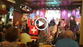 Durante nossa caminhada nos deparamos com uma placa na porta de um restaurante que anunciava um show típico Suiço ( tínhamos programado para ssistir em Interlaken). Havia começado há 10 minutos, perguntamos se poderíamos entrar e conseguimos uma mesa. Foi sensacional! Tinha um grupo enorme de turistas e nos divertimos bastante pois há muita interatividade com o público e estávamos louco para ver a apresentação com o Alphorn, uma espécie de corneta gigante. Assistam os vídeos abaixo.